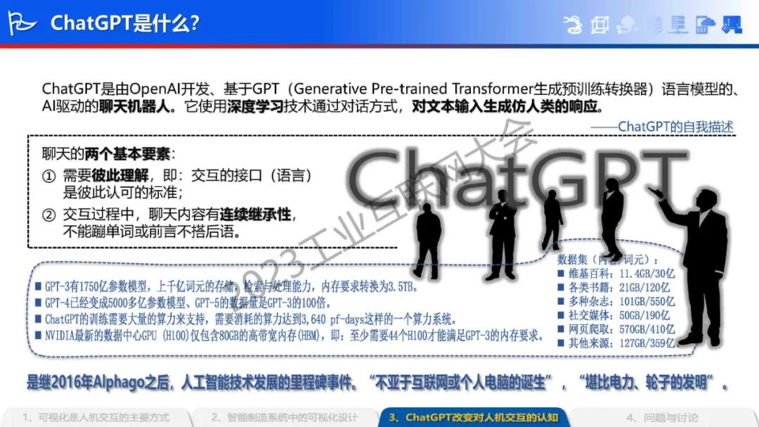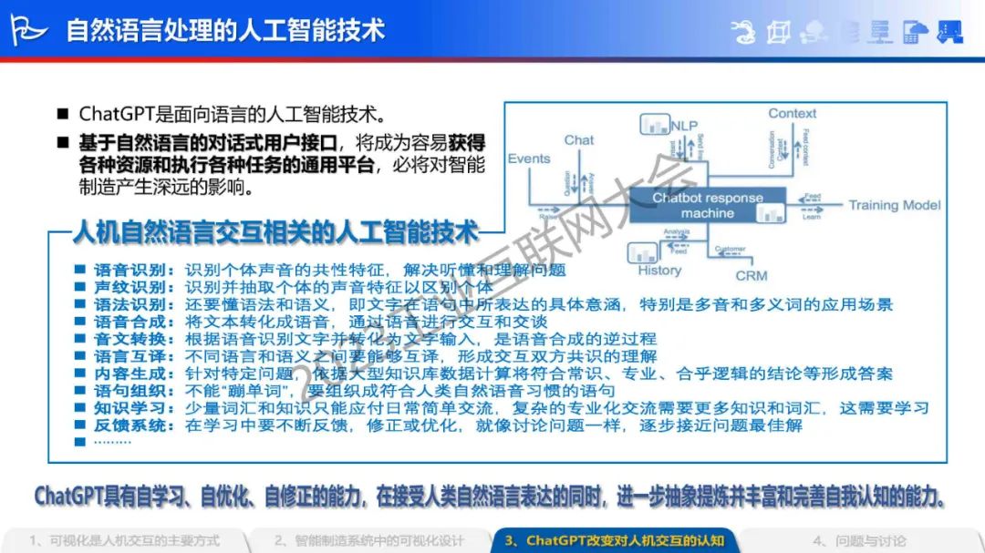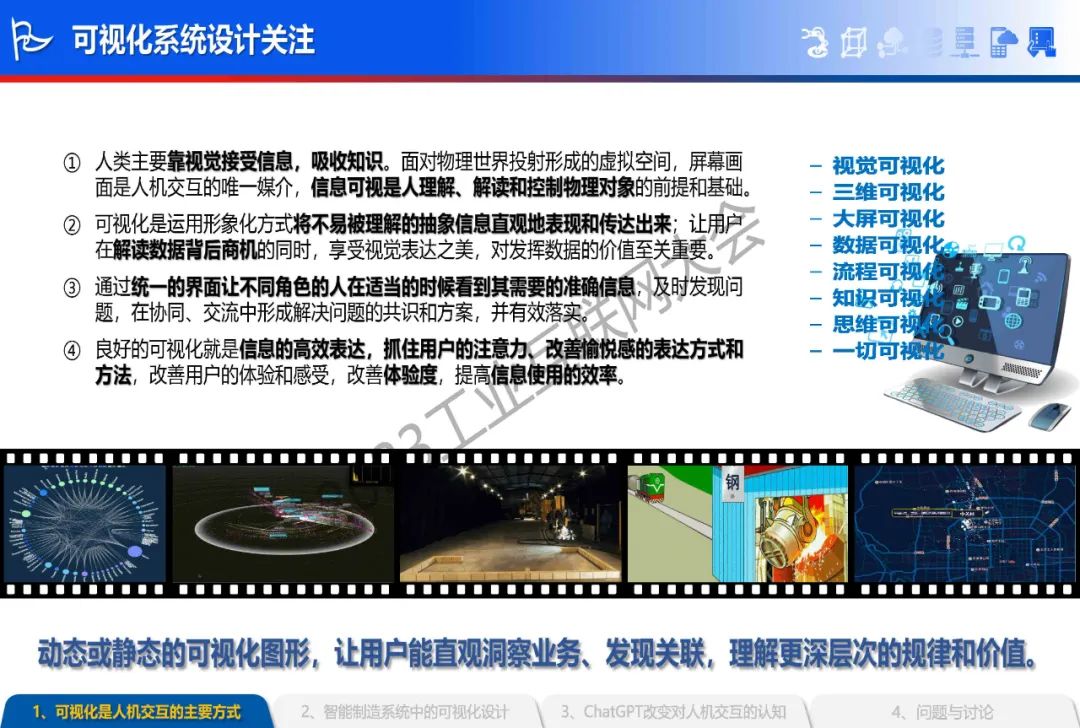 他表示,目前的人機交互功能都是遵循機器語言設計,這不僅技術門檻高,且效率低下。需要開發其他技術滿足需求。與人類自如交互的多模態大模型已經達到了謹慎可用程度,意味著人機交互又新增了一個新賽道道、新手段、新模式。通用人工智能進入智能制造過程,包括即時知識支撐、操業導航、基礎材料匯聚、多源信息整合、決策支持建議等,甚至及時發出控制動作指令。