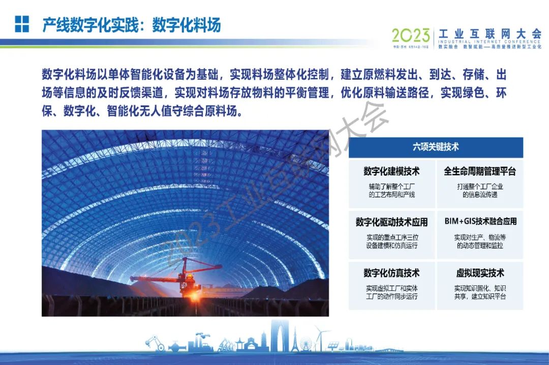 “數(shù)字化料場以單體智能化設(shè)備為基礎(chǔ),實現(xiàn)料場整體化控制,建立原燃料發(fā)出、到達(dá)、存儲、出場等信息的及時反饋渠道,實現(xiàn)對料場存放物料的平衡管理,優(yōu)化原料輸送路徑,實現(xiàn)綠色、環(huán)保、數(shù)字化、智能化無人值守綜合原料場。”
