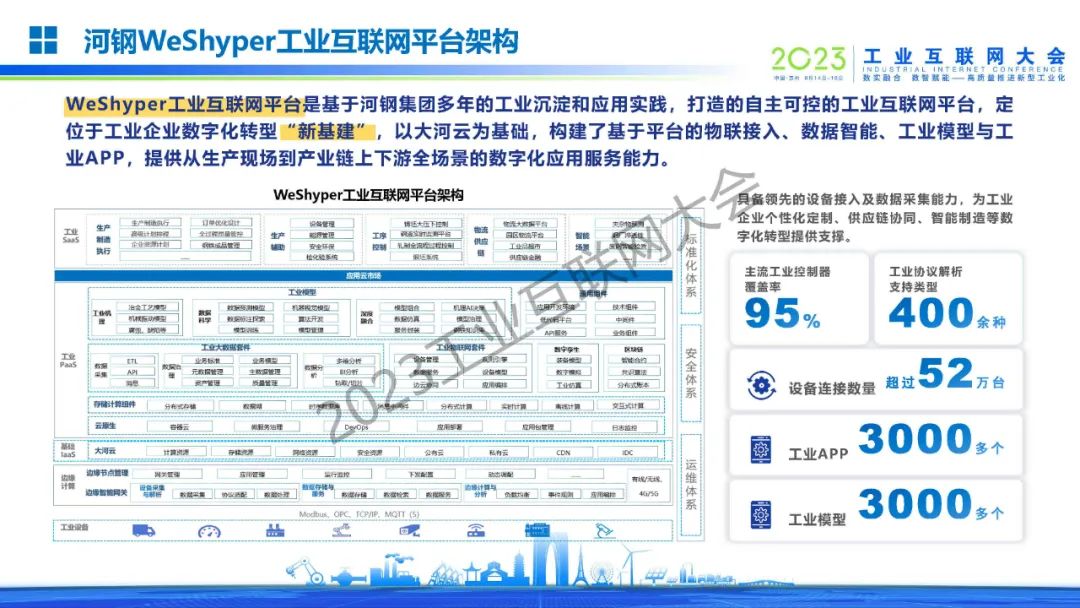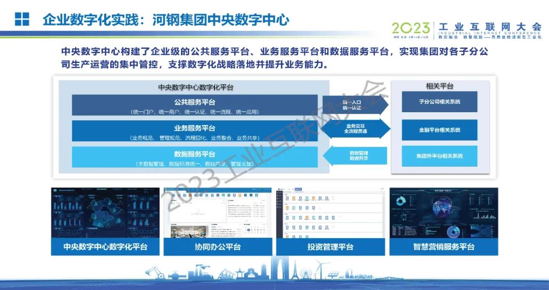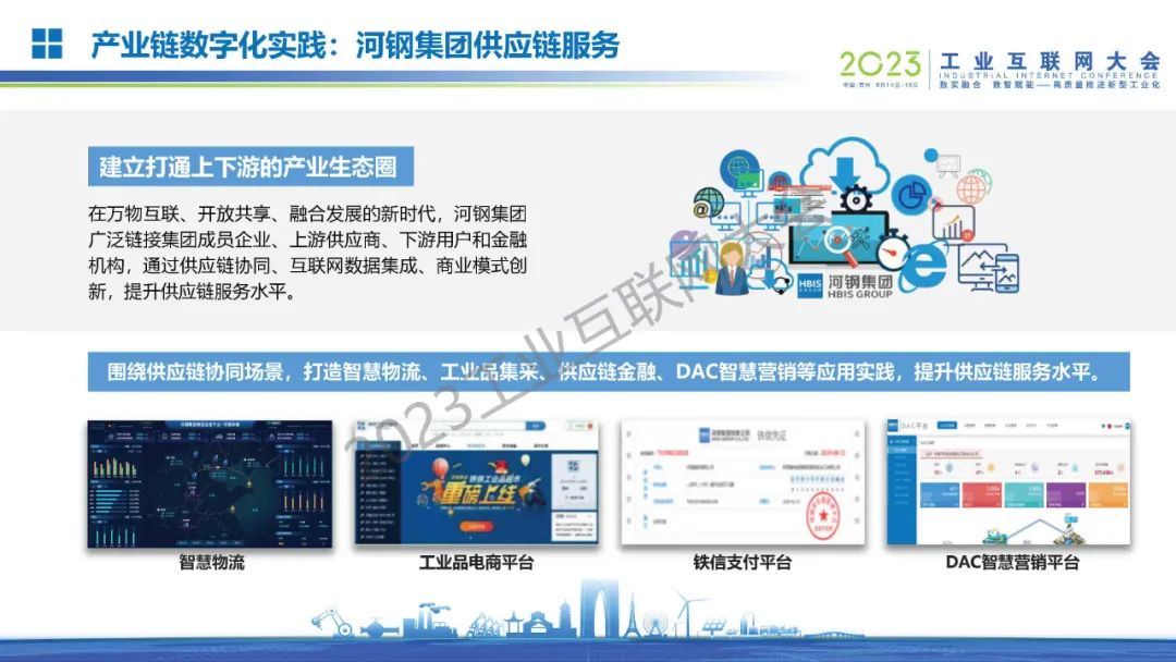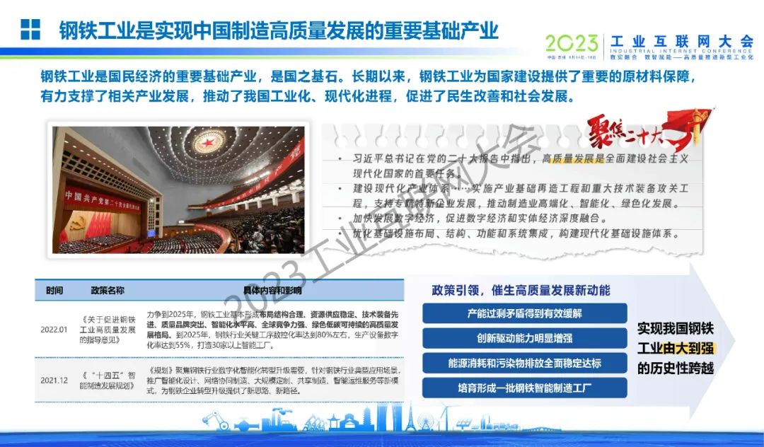 6月16日,在2023工業(yè)互聯(lián)網(wǎng)大會“工業(yè)互聯(lián)網(wǎng)與鋼鐵行業(yè)融合應(yīng)用論壇”上,河鋼數(shù)字技術(shù)股份有限公司董事、市場總監(jiān)姜濤發(fā)表了《工業(yè)互聯(lián)網(wǎng)賦能鋼鐵工業(yè)數(shù)字化轉(zhuǎn)型——河鋼工業(yè)互聯(lián)網(wǎng)平臺建設(shè)實踐》的主題演講。