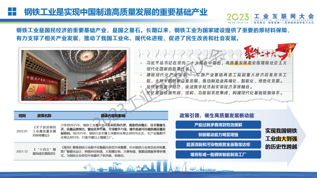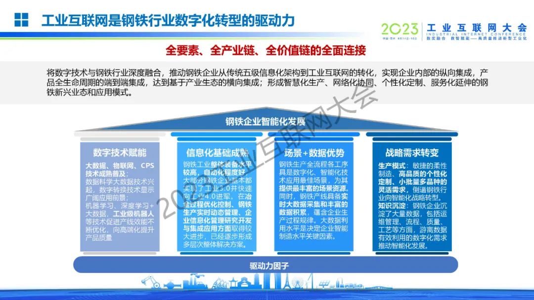 姜濤介紹,鋼鐵工業(yè)迎來高端化、智能化、綠色化發(fā)展新時代,是國民經(jīng)濟(jì)的重要基礎(chǔ)產(chǎn)業(yè),是國之基石。工業(yè)互聯(lián)網(wǎng)是鋼鐵行業(yè)數(shù)字化轉(zhuǎn)型的驅(qū)動力。將數(shù)字技術(shù)與鋼鐵行業(yè)深度融合,推動鋼鐵企業(yè)從傳統(tǒng)五級信息化架構(gòu)到工業(yè)互聯(lián)網(wǎng)的轉(zhuǎn)化,實現(xiàn)企業(yè)內(nèi)部的縱向集成,產(chǎn)品全生命周期的端到端集成,達(dá)到基于產(chǎn)業(yè)生態(tài)的橫向集成;形成智慧化生產(chǎn)、網(wǎng)絡(luò)化協(xié)同、個性化定制、服務(wù)化延伸的鋼鐵新興業(yè)態(tài)和應(yīng)用模式。