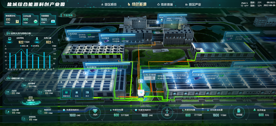 國網江蘇省電力公司鹽城供電公司充分利用先進的能源互聯網、大數據、云平臺等數字化技術,對園區供能、輸能、用能全鏈條進行能源管理、調度、交易,構建新型供能用能生態鏈,實現供能側的多能互補和用能側終端一體化,滿足綠色低碳、安全高效、可持續發展要求。