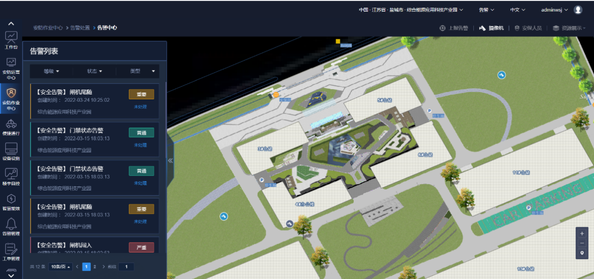 面向園區日常運營管理,通過園區數字平臺,將原本孤立的周界、門禁、消防、車輛、樓宇、群控、設施、資產、環境、辦公等業務子系統統一接入、匯聚、建模,安防系統、物聯網系統相關系統等信息進行整合,形成數字孿生園區,立體呈現園區的整體情況,包括人員/車輛態勢、園區安防態勢、能源消耗情況、設施和資產運營態勢、環境和空間使用情況等,并通過聯動視頻監控系統物聯網系統遠程查看和控制。