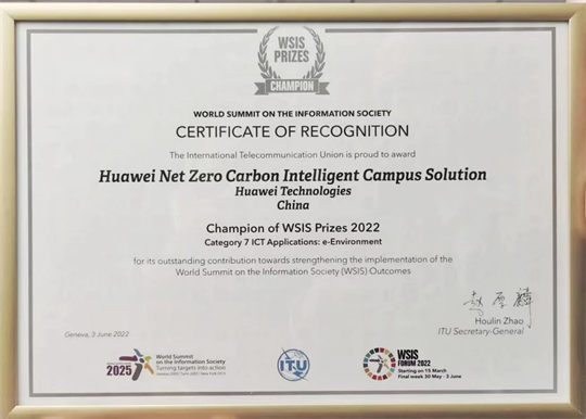“三個轉型”助推園區數字化綠色化協同發展。一是能源轉型。綠色能源替代化石能源,清潔能源占比85%,終端消費電能占比100%,源-網-荷-儲全域協調優化,通過智慧運營分析實現可視、可管、可控,節約電能300萬千瓦時/年。二是數字化轉型。萬物互聯實現全要素實時感知,打通信息孤島,全域融合、統一管控,智慧決策支撐業務敏捷開發,設施效率提高25%。零碳轉型全價值鏈碳足跡監測、統計和披露,碳資產全生命周期管理,碳、能聯動,碳、能決策優化,減少碳排放5600噸/年。江蘇寧能源微碳慧能科創產業項目為代表案例參加2022WSIS 信息社會世界首腦峰會年度大獎的評選,最終榮獲WSIS2022冠軍獎。