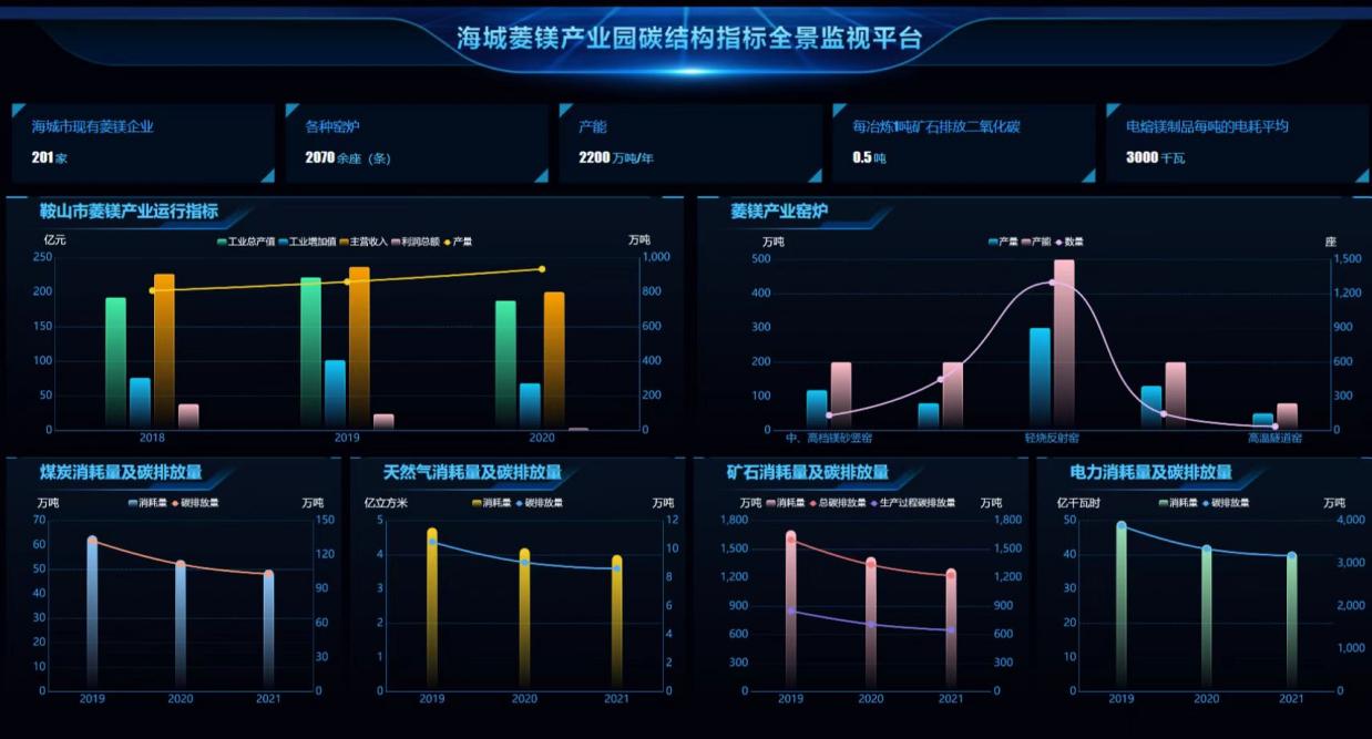 海城菱鎂產業園是我省優勢資源開發的典型代表,實現碳排放多維度全景監視及分析,對加強產業園的能源監管和促進產業健康發展意義重大。平臺利用可視化技術實現海城菱鎂產業園碳排放多維 度全景監視及分析,可以有效監控企業的能源消耗和碳排放情況,構建企業能源消耗與碳排放的相關性分析,提升外在和自身的檢查管理能力,引導企業節能減排,為可持續綠色發展提供保障。